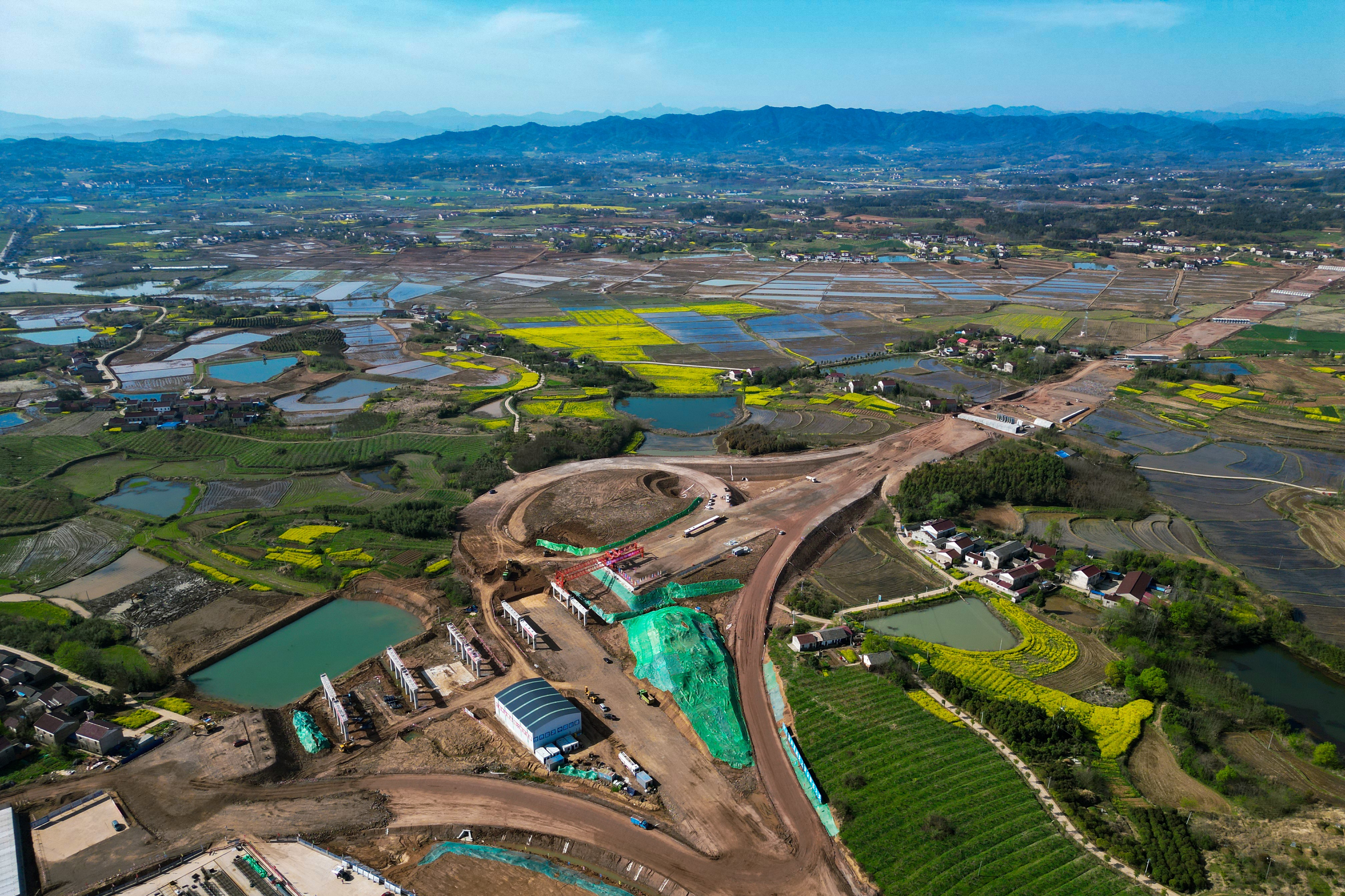 仲春時節,農事漸緊。從空中俯瞰,一幅熱火朝天的春耕圖在皖西大地的沃土上徐徐鋪展在中國能建葛洲壩交投和襄高速項目建設現場,數臺壓路機路拌機、撒布車……來回穿梭、有序進行HAS土壤固化劑施工作業,就像是播“種”一樣,一幅繁忙的耕耘景象170公里沃野蘊藏著勃勃生機,廣袤田疇孕育著無限希望