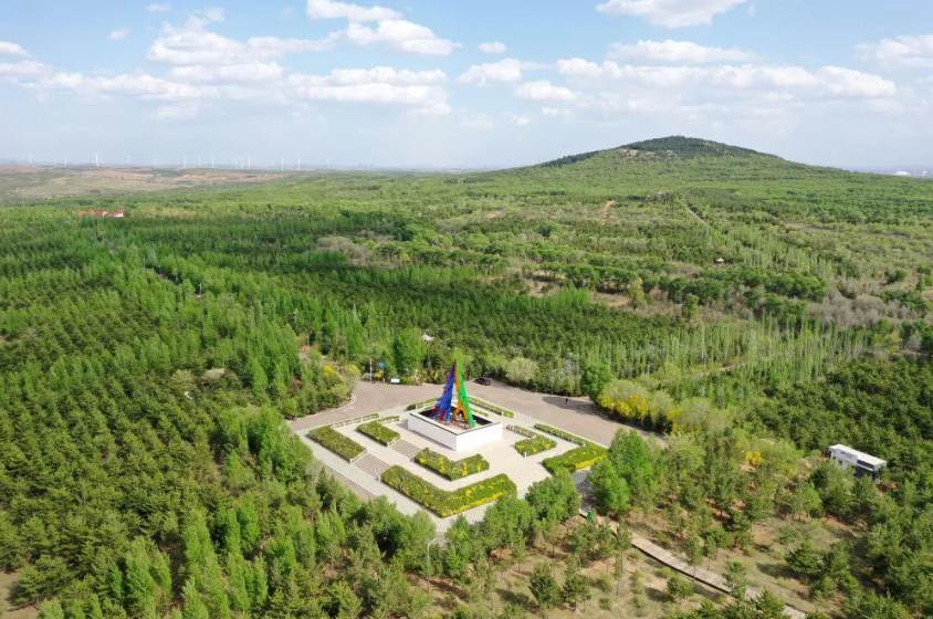 這是2023年5月18日拍攝的山西省朔州市右玉縣南山森林公園一角(無人機照片)。新華社記者 詹彥 攝