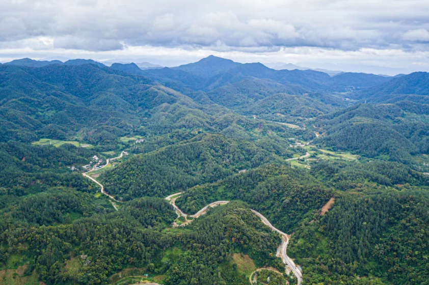這是2025年7月22日在海南省保亭黎族苗族自治縣毛感鄉拍攝的熱帶雨林及蜿蜒其中的環熱帶雨林國家公園旅游公路(無人機照片)。新華社記者 蒲曉旭 攝